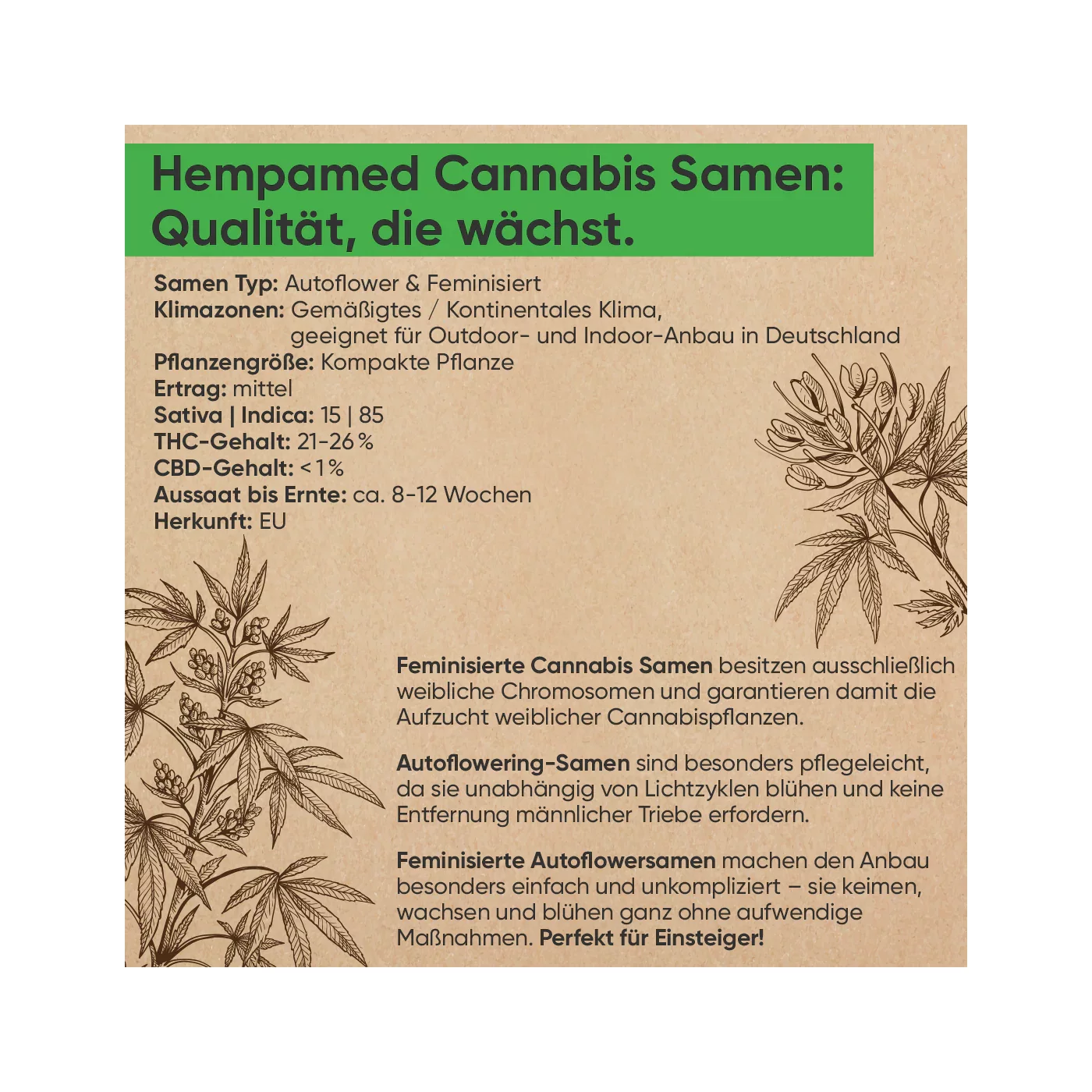 • Feminisierte Samen: Garantiert weibliche Pflanzen für maximale Blütenerträge